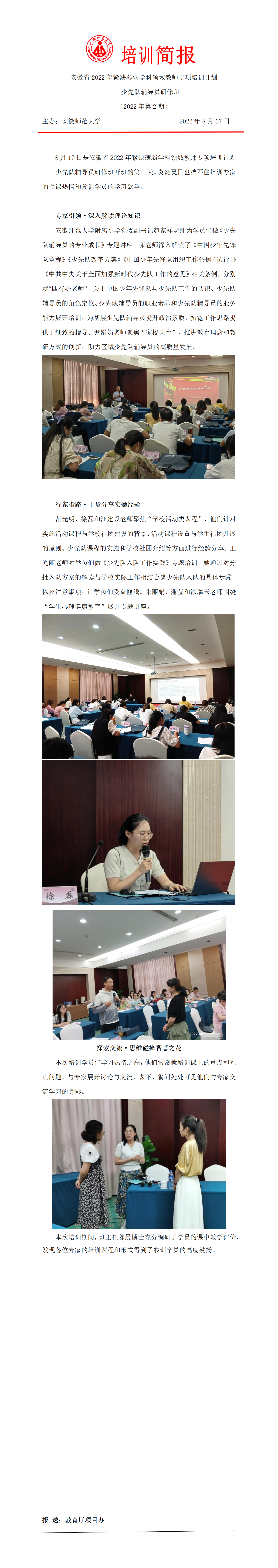 【2022省培师干训】少先队辅导员——乡村学校少先队辅导员研修班培训简报2022年第2期