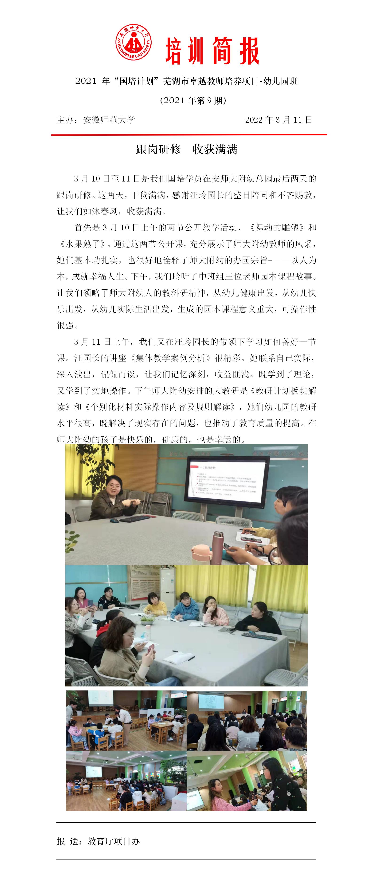 【2021卓越教师培养】芜湖市卓越教师培养项目-幼儿园 2021年第9期